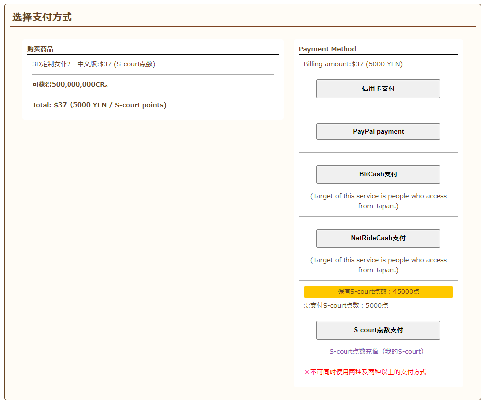 如您使用「S-court点数支付」,则无需跳转到专用页面即可完成支付。
