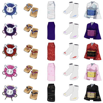 在编辑界面中,会追加以下物品。 *粗呢短大衣套装 *女忍者套装 *浴衣套装 -刘海 *超短发 -接发 *包子头