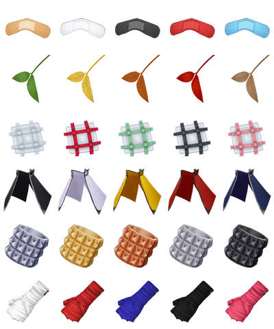 在编辑界面中,会追加以下物品。 -鼻子 *鼻用护创膏 *叼用叶子 *护创膏纱布 -后背 *腰披 -手腕 *重环 -手套 *武术运动员的绷带